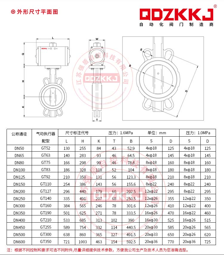 5、氣動蝶閥近似等百分比的流量特性,可用于調節或開關式控制。